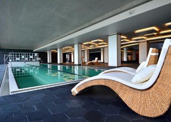 Paslaugos: fitneso centras, restoranas, 2 barai, turkiška pirtis, vasaros terasa, liftas, dviračių nuoma, baseinai (mineralinio vandens baseinas su povandeniniais masažo purkštukais ir krintančio vandens kaskada-kobra, dviejų takelių sporto baseinas (20 m ilgio), sūkurinė vonia su 26 sėdimomis ir 7 gulimomis vietomis, vaikų (iki 7 m.) baseinas su fontanėliais). Originaliu interjeru išsiskiria skaitykla – tai užburianti kupolo erdvė, įsikūrusi pastato širdyje.